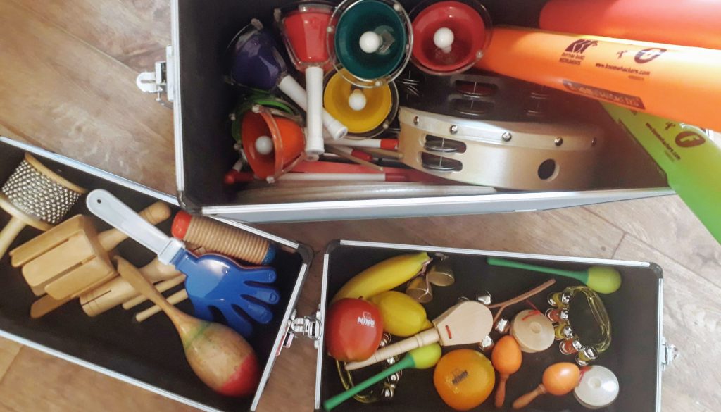 We’ve recently revamped our box of amazing instruments and percussion for our music sessions at The Sick Kids Hospital. So far they are going down a storm, and the Boom Whackers (colourful tubes of plastic that make a note when hit against something) are understandably very popular!