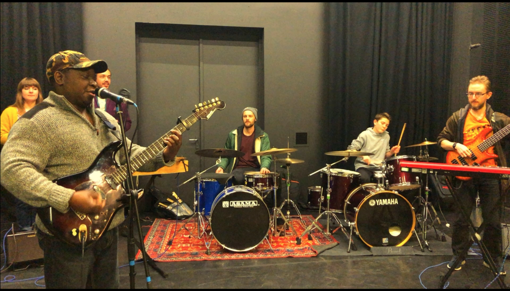 A new challenge for some of the Tinderbox Orchestra. Rise Kagona, a founding member of Zimbabwe’s Bhundu Boys, dropped us straight into Misodzi Pamatama (“Tears On My Cheeks”) for his workshop with us. Thanks to Multi-Culti and the Womad Foundation for making it happen.