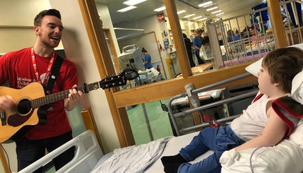 The Edinburgh Children’s Hospital Charity have been doing a campaign called “Heart of the Hospital” where they share all the good things that are going on in the hospital. We’re so busy when we’re in the wards with doing music and having fun that sometimes we forget to reflect on what we’re doing and the impact it has. They spoke to Rhys about what he’s been doing: