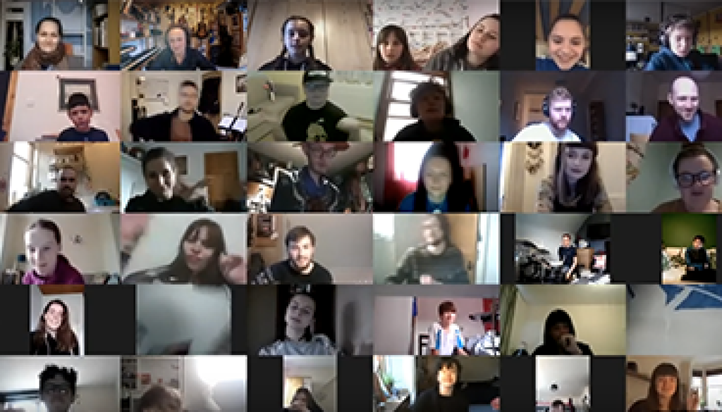 All the footage comes from our online youth clubs, music groups and orchestras, who have been gathering to rehearse and record together online during the lockdown, and the video was created in support of youth work and local communities.